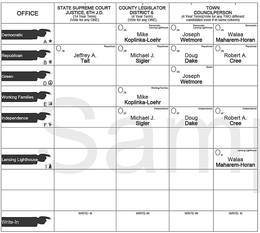 Print ![]() | ![]() | November 7th is election day. In Lansing that means that three County Legislature seats are to be filled. In Districts 6, 7, and 8 only one candidate is running. Deborah Dawson (D) is running in Districts 6 and 7 (Village of Lansing), and Glenn Morey (R)/ is running in District 8 (the eastern portion of North Lansing). Michael Koplinka-Loehr (D) is challenging incumbent Mike Sigler (R) in districts 1 through 5. Democrats Joe Wetmore and Walaa Maharem-Horan are challenging incumbent Republicans Robert Cree and Doug Dake for Lansing Town Board seats. The Lansing Star asks the same questions of all the candidates in contested races. This allows you to compare the candidates on a level playing field. The questions are the same for all, but their answers differentiate the candidates. We did that with each of the Town Board candidates, and you will all the interviews in this week's issue. For County Legislature we did something different this year: the Lansing Star hosted a debate, and you can see the video by clicking the graphic to the left. All the interviews plus the debate video will continue to be available through election day. The ballot also has three proposals. The first is to authorize a Constitutional Convention to revise and amend the state constitution. The second allows the complete or partial forfeiture of a public officer's pension if he or she is convicted of a felony. The third authorizes the use of forest preserve lands for specific purposes and allow bicycle trails and utility lines on roads that go through public forests. ![]() | |