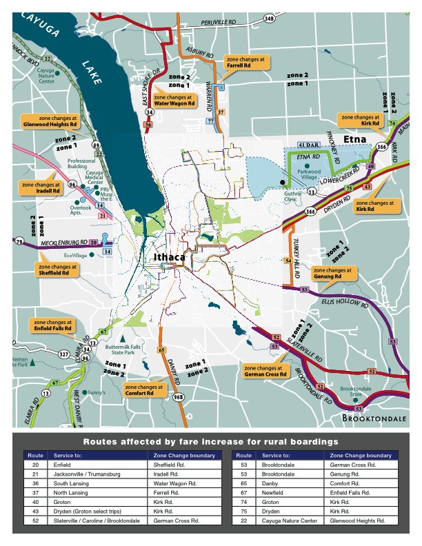 - discontinuing the Route 68 as a portion of it duplicates the Route 15 service and there is low ridership on the Route 13/Elmira corridor;